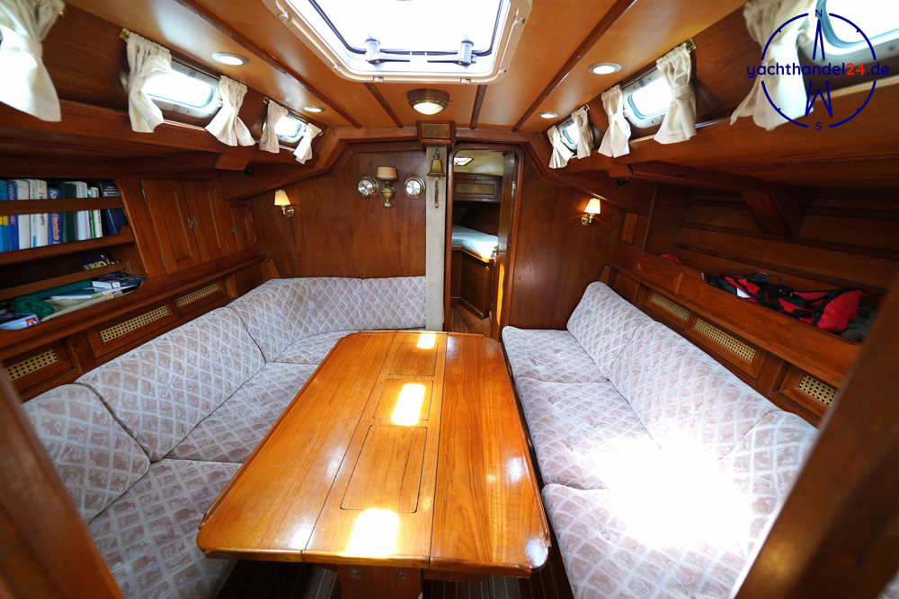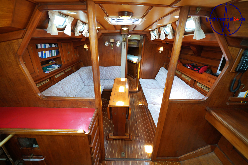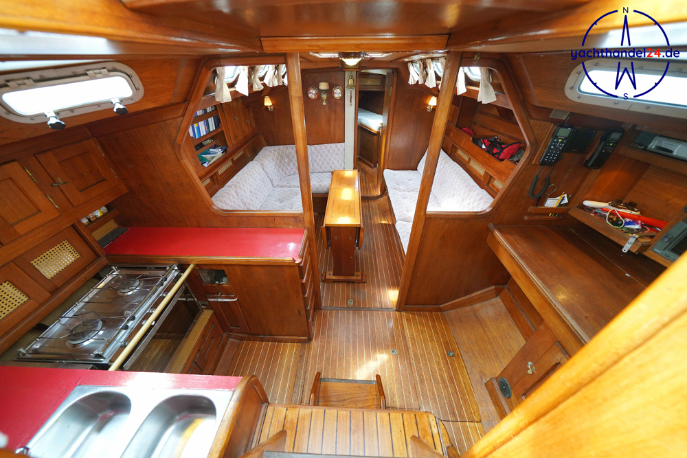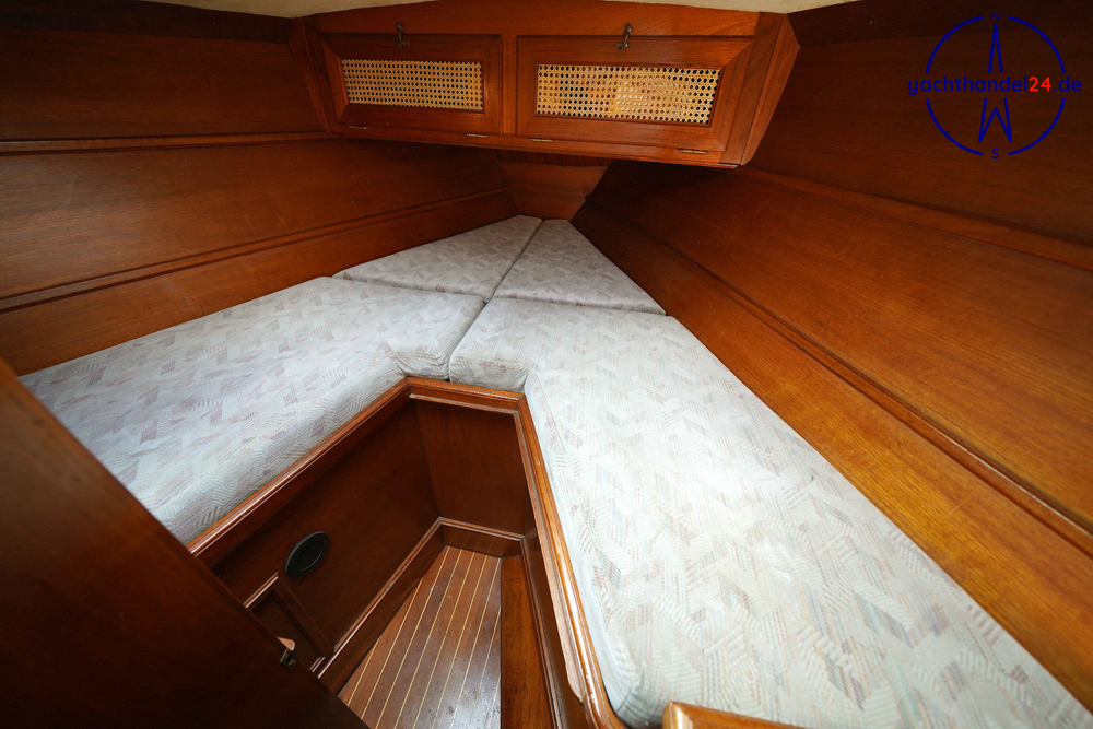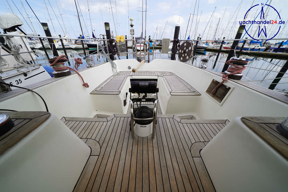 Alle Fotos von der Emka ET 36 sind für den Verkauf aufgenommen worden und zeigen das Boot in seinem aktuellen Zustand. Diese Emka ET 36 ist von ihrem 1. Eigner sehr sorgfältig mit viel Holz hochwertig ausgebaut worden. Der Innenausbau ist einmalig und toll gearbeitet. Der aktuelle 2. Eigner hat das Boot gründlich gewartet, so, dass es sich aktuell in sehr gutem technischen Zustand befindet. Motor: Vetus Peugeot P4.17 Baujahr: 1996 Motorinspektion: - in 2022: Zahnriemen, Schläuche, Riemenscheibe, Umlenkrollen erneuert und Ventilspiel geprüft. Neuerungen & Wartungen - Inverter (Wandler) 12V auf 230V, neu 2023 - Großschot neu 2023 - Dieseltankreinigung 2022 - Seeventile Motor und WC neu 2022 - Starterbatterie, Vetus Blei 85Ah, neu 2022 - Verbraucherbatterie, 3x Vetus AGM, je 70Ah, neu 2022 - Matratzen neu 2022 (Kaltschaum) - Festmacher neu 2022 inkl. Ruckdämpfer - Rumpflackierung neu 2016 von Fa. Wrede - Seekartenplotter Zeus, B&G, neu 2015 - UKW-Sprechfunk mit DSC B&G neu 2025 - AIS mit Sender und Empfänger B&G neu 2015 Segel und Takelage 1) Großsegel, durchgelattet, 28,7 m², neu 2012, Zustand: gut 2) Genua II, 35 m², neu 2014, Zustand: gut 3) Gennaker: 99m², neu 2014, Zustand: gut, mit Bergeschlauch 4) Spi-Baum und -einrichtung Wir begleiten Besichtigungen, nach Terminabsprache, Di. - Sa. in der Zeit von 09 - 17Uhr. Bitte stimmen Sie einen Termin mit uns ab unter 04642 / 96 59 59 (Büro; Mo.- Fr., 09-14Uhr) oder via E-Mail an die info@yachthandel24.de.