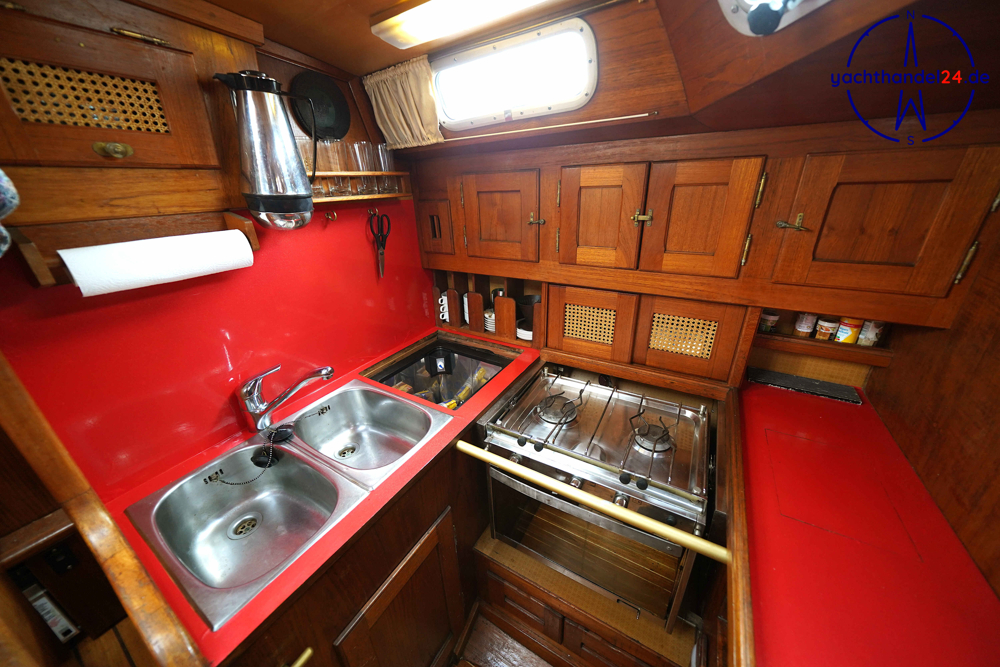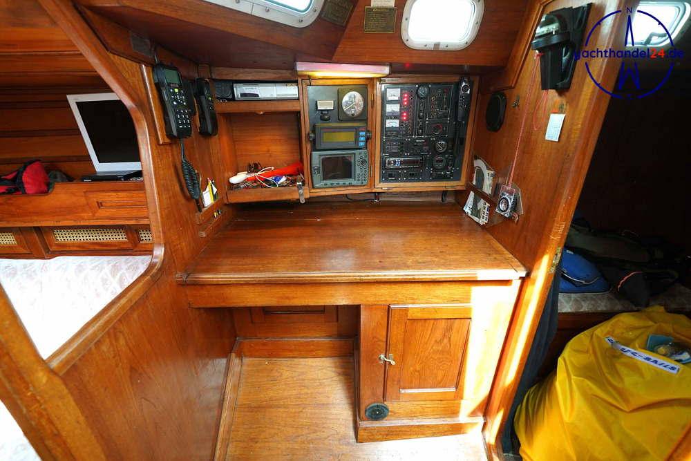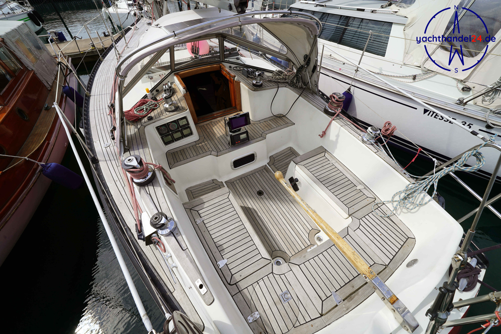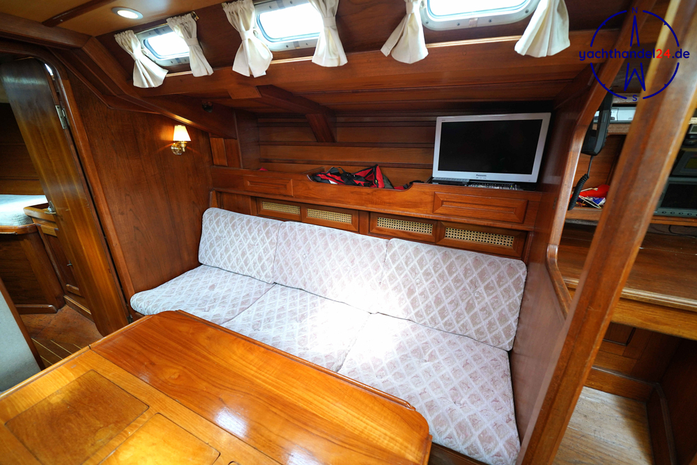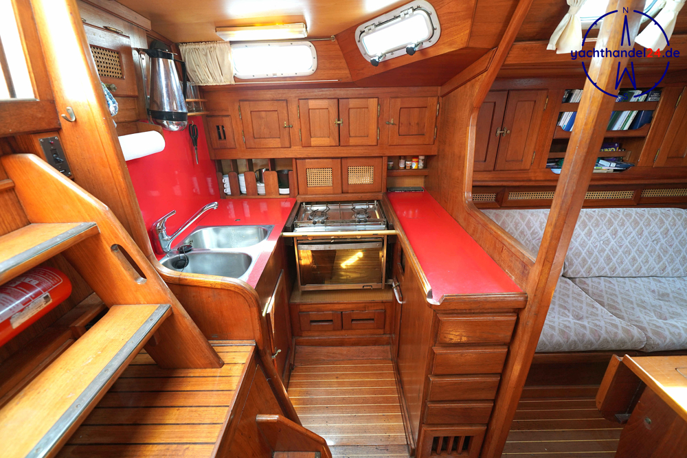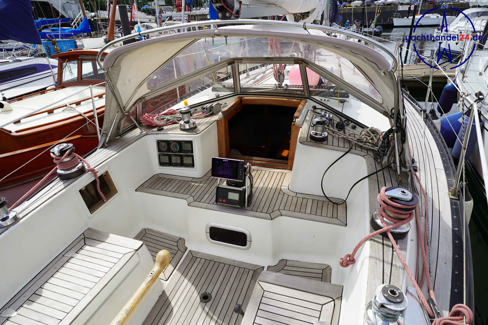 Alle Fotos von der Emka ET 36 sind für den Verkauf aufgenommen worden und zeigen das Boot in seinem aktuellen Zustand. Diese Emka ET 36 ist von ihrem 1. Eigner sehr sorgfältig mit viel Holz hochwertig ausgebaut worden. Der Innenausbau ist einmalig und toll gearbeitet. Der aktuelle 2. Eigner hat das Boot gründlich gewartet, so, dass es sich aktuell in sehr gutem technischen Zustand befindet. Motor: Vetus Peugeot P4.17 Baujahr: 1996 Motorinspektion: - in 2022: Zahnriemen, Schläuche, Riemenscheibe, Umlenkrollen erneuert und Ventilspiel geprüft. Neuerungen & Wartungen - Inverter (Wandler) 12V auf 230V, neu 2023 - Großschot neu 2023 - Dieseltankreinigung 2022 - Seeventile Motor und WC neu 2022 - Starterbatterie, Vetus Blei 85Ah, neu 2022 - Verbraucherbatterie, 3x Vetus AGM, je 70Ah, neu 2022 - Matratzen neu 2022 (Kaltschaum) - Festmacher neu 2022 inkl. Ruckdämpfer - Rumpflackierung neu 2016 von Fa. Wrede - Seekartenplotter Zeus, B&G, neu 2015 - UKW-Sprechfunk mit DSC B&G neu 2025 - AIS mit Sender und Empfänger B&G neu 2015 Segel und Takelage 1) Großsegel, durchgelattet, 28,7 m², neu 2012, Zustand: gut 2) Genua II, 35 m², neu 2014, Zustand: gut 3) Gennaker: 99m², neu 2014, Zustand: gut, mit Bergeschlauch 4) Spi-Baum und -einrichtung Wir begleiten Besichtigungen, nach Terminabsprache, Di. - Sa. in der Zeit von 09 - 17Uhr. Bitte stimmen Sie einen Termin mit uns ab unter 04642 / 96 59 59 (Büro; Mo.- Fr., 09-14Uhr) oder via E-Mail an die info@yachthandel24.de.