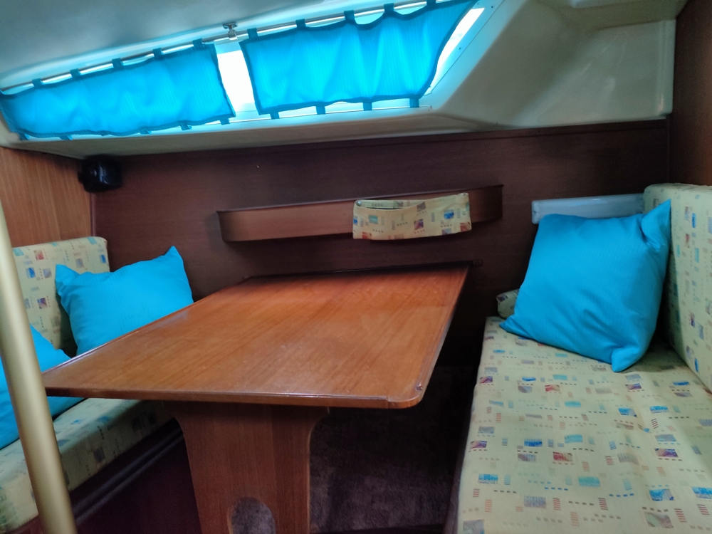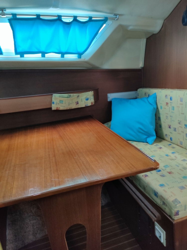 - 4-5 Schlafplätze: Die Länge der Liegefläche im Vorschiff beträgt rund 2 Meter. Zu guter Letzt kann man den Tisch der Dinette zur Liegefläche für 2 Personen umfunktionieren mit bis zu 1,95m Länge.