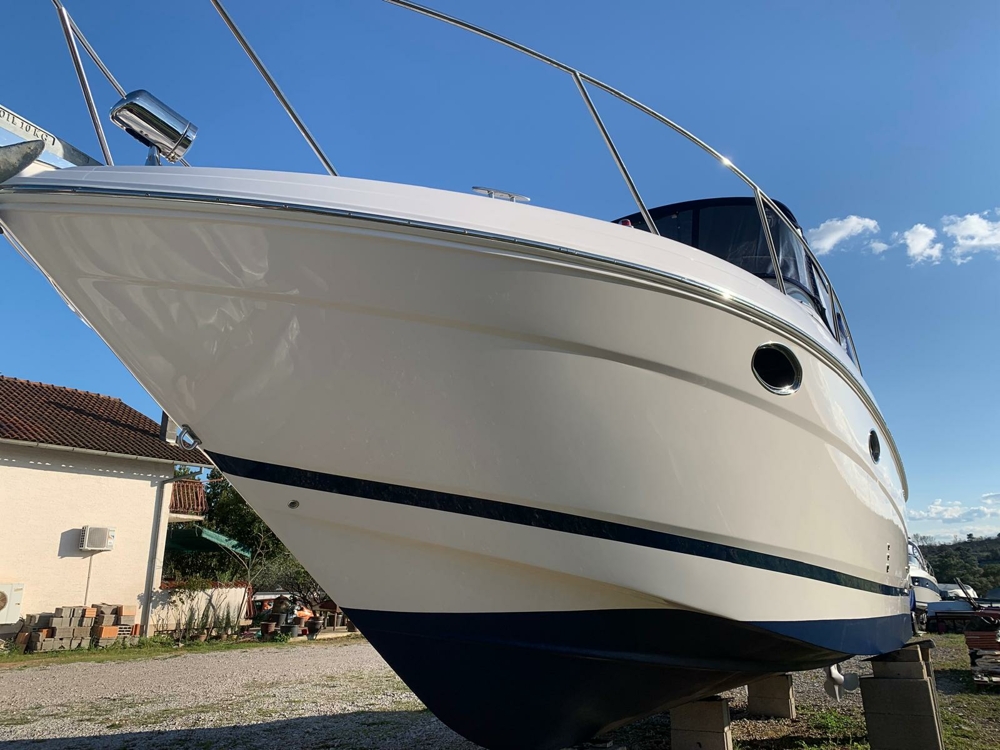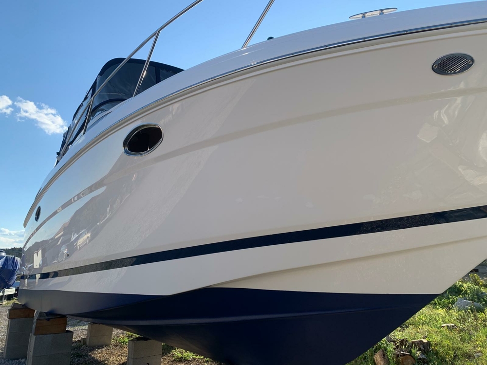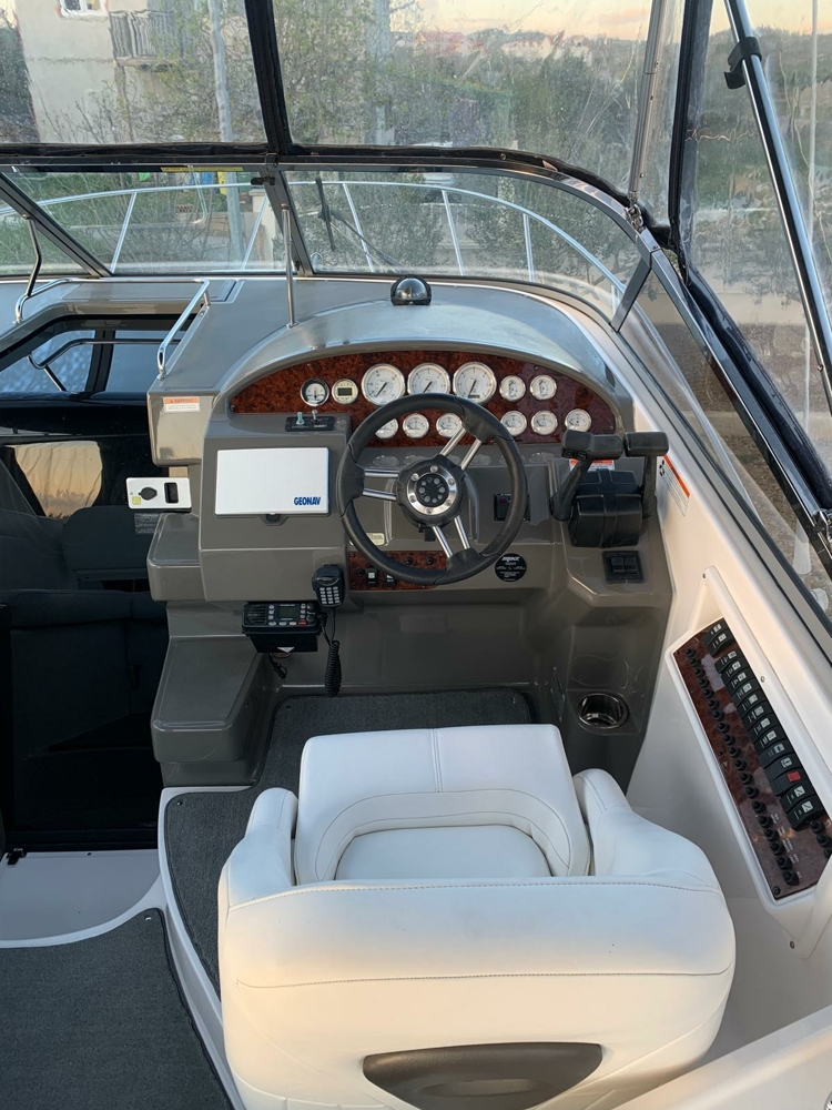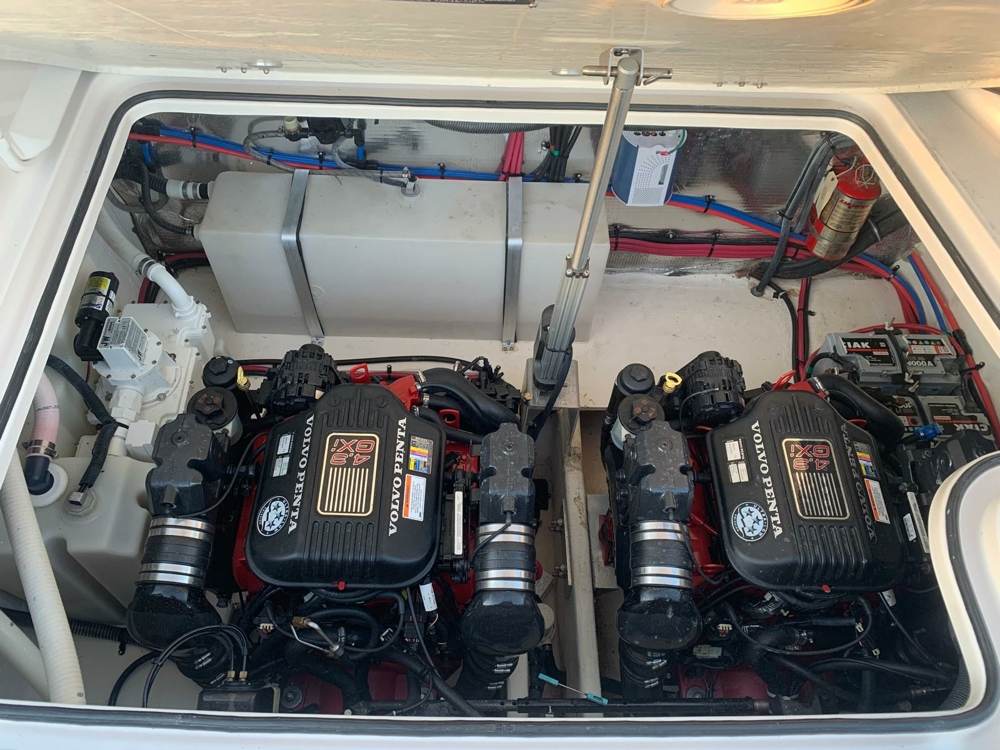 It is equipped with 2 × Volvo Penta 4.3 GXI petrol engines with DPS-A DuoProp stern drives, delivering a total of 450 HP, and has only approximately 270 operating hours. The engines were flushed with fresh water after every season and professionally winterized. The engine compartment is dry and clean.