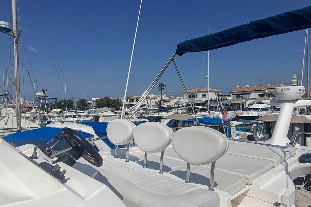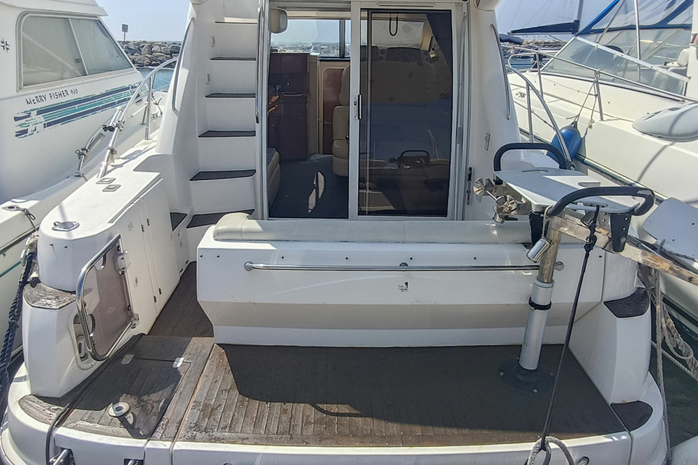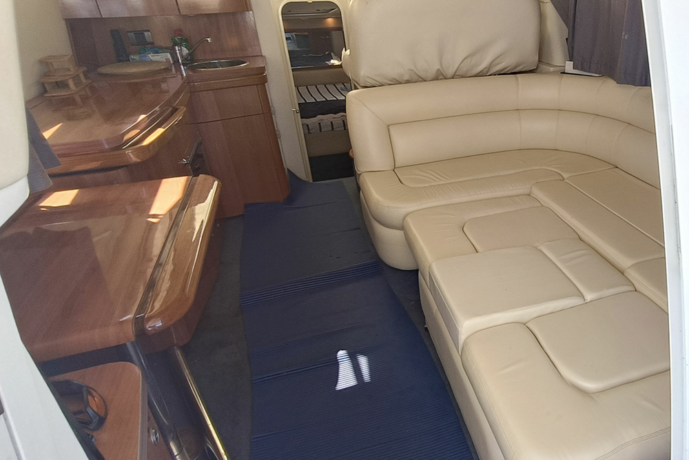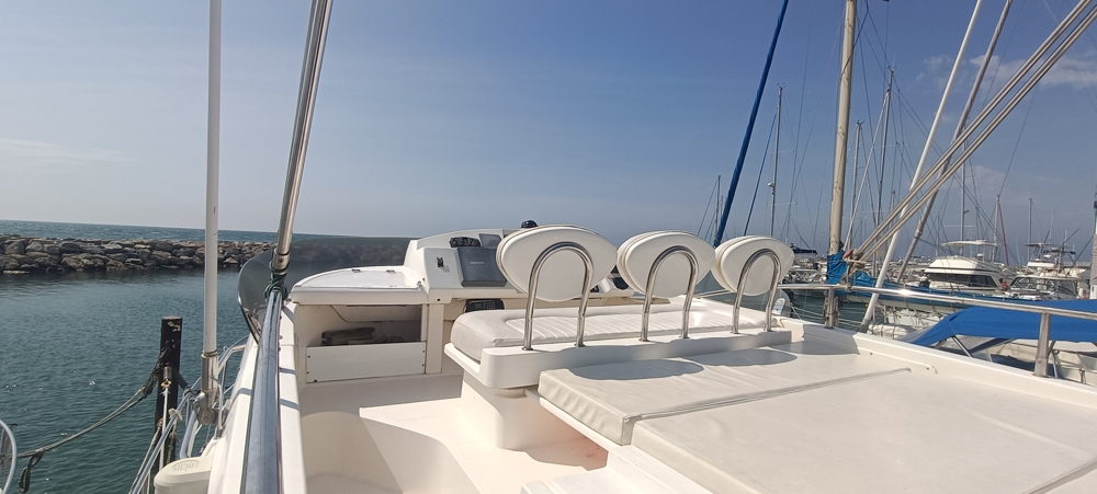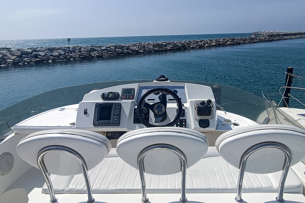 β’ Cockpit bench seat slides electrically aft, expanding the cockpit space and allowing easier access to the dock (no gangway needed)