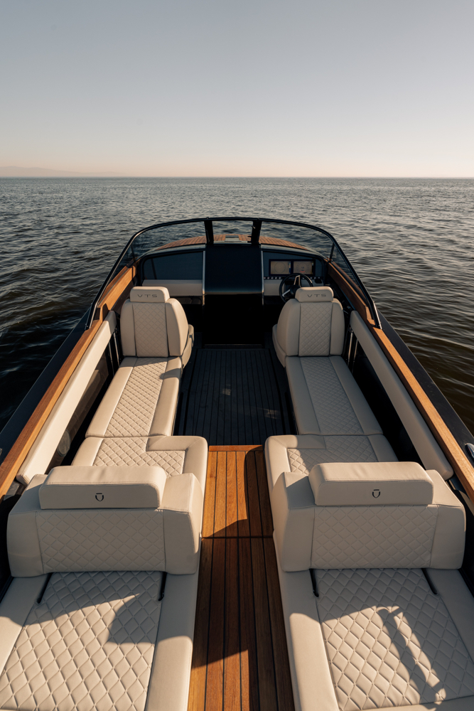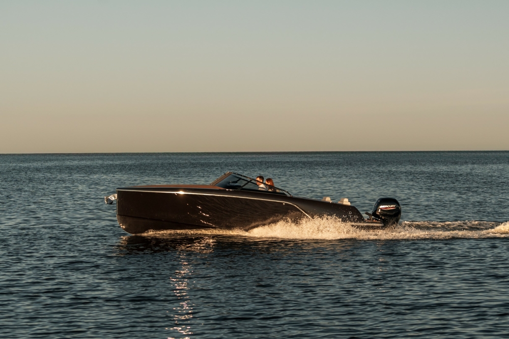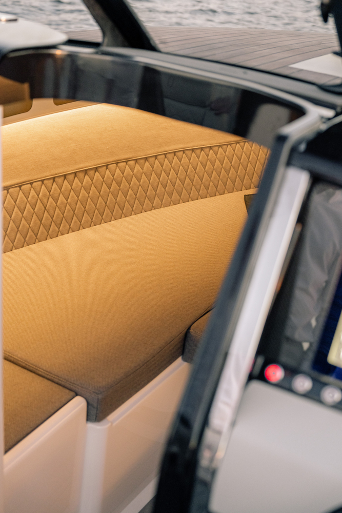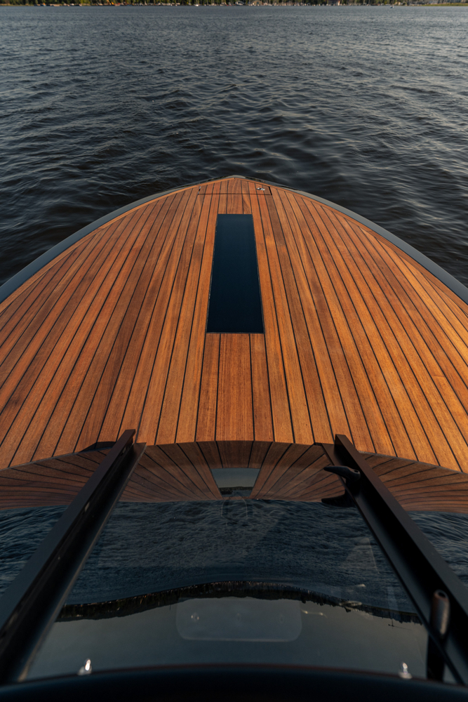 Standard equipment: Elegant design in teak wood * Hardened front panel * Stainless steel protection on the bow, keel strips and scrubs * Numerous storage spaces, including a 500-litre trunk on the rear * Carefully designed cabin with stylish details * Large bed with dimensions 2.30 x 2.00 m * Luggage compartment in the cabin (corresponding to aviation standards) * Hydraulic control system * Double battery system with charging sequence Please contact us, we will be happy to advise you.