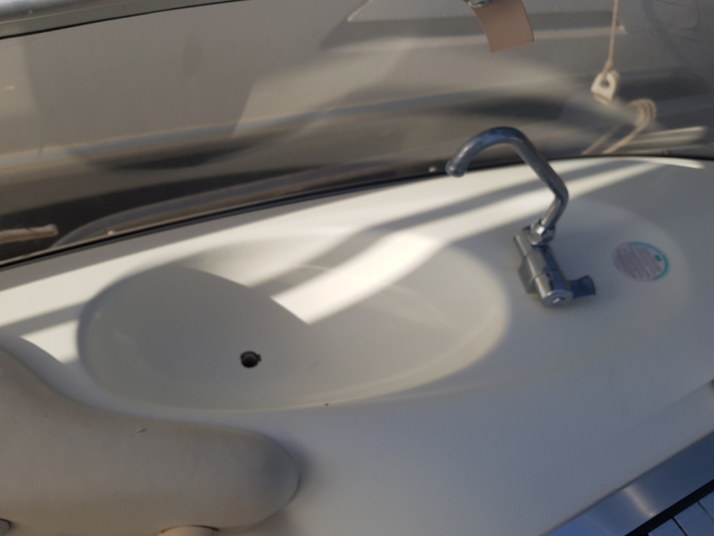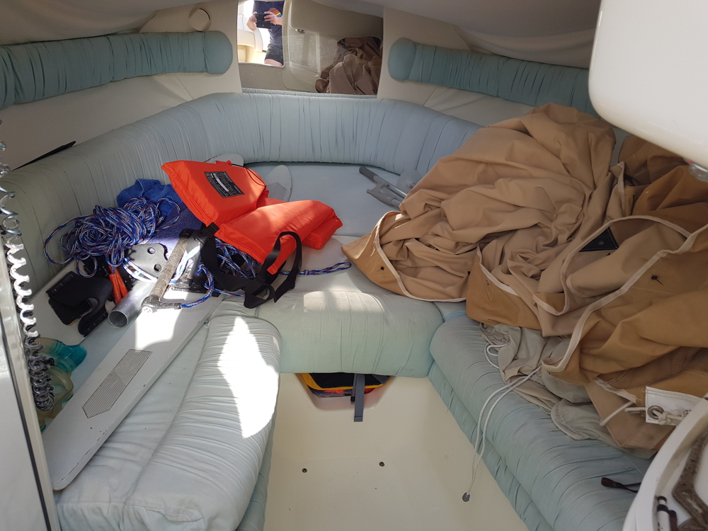 convertible, persenning, table, refrigerator, outdoor shower, bathing platform with ladder, cabin for 2 pers.