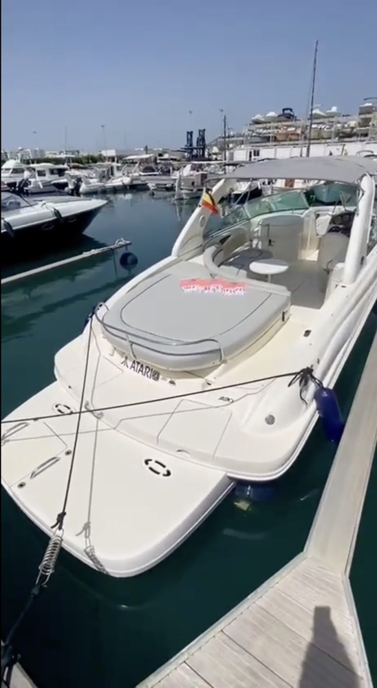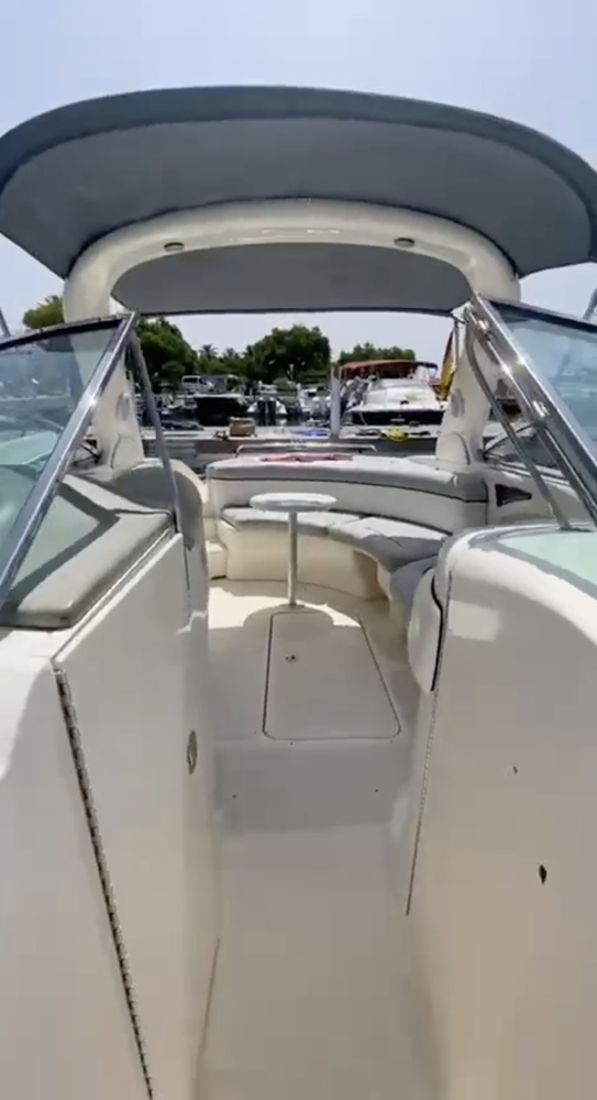 Currently it has the original bimini arc and the gray upholstery as we changed it in 2024.