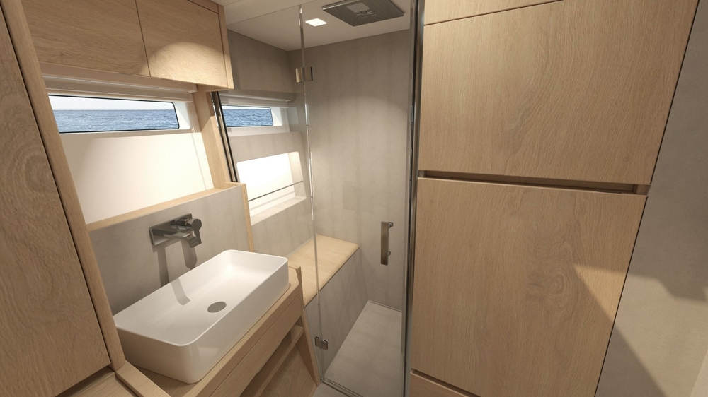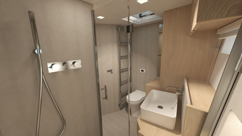 Security is made big and we are not going to compromise. Many details are used for active or passive safety - from waterproof sheets, the water line reinforced against ice pressure, the sea valves on climbing pipes, the frost-proof closed cooling circuits to the permanently installed stretching troughs on deck for self-locking. No other serial yacht offers these features by default.