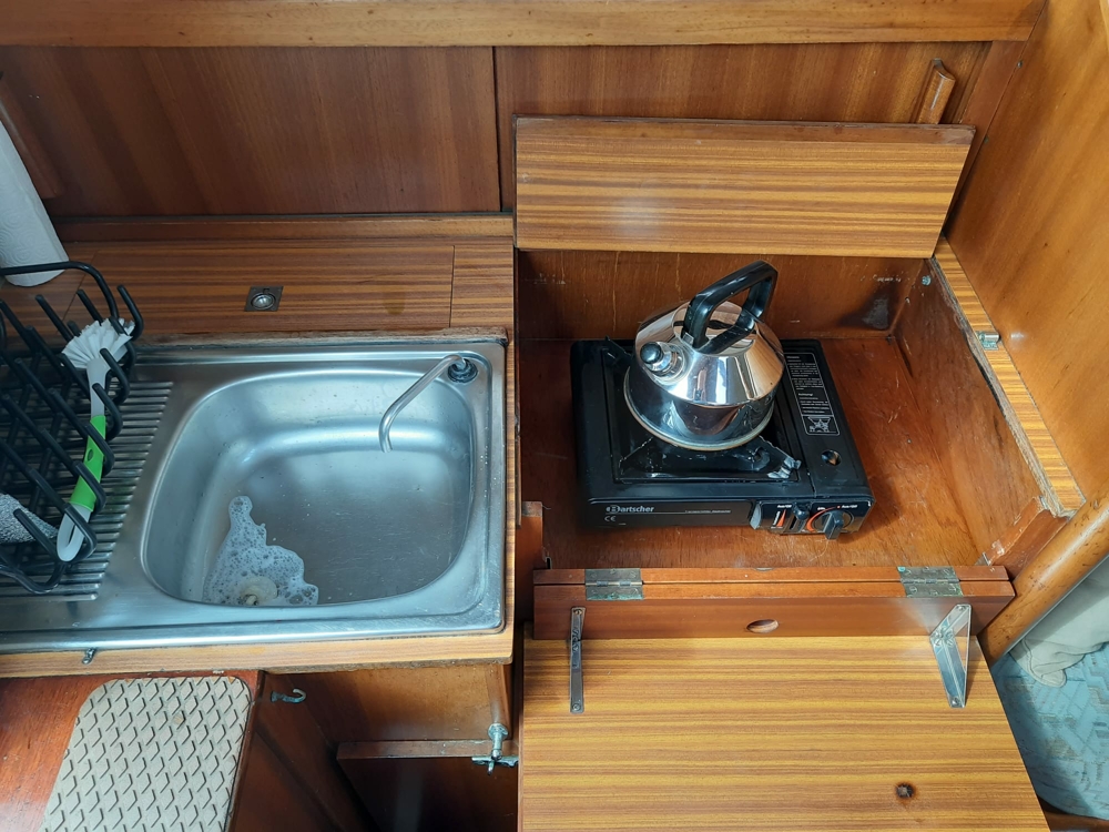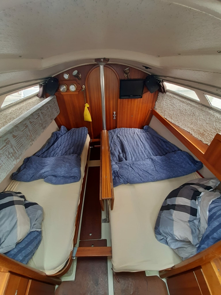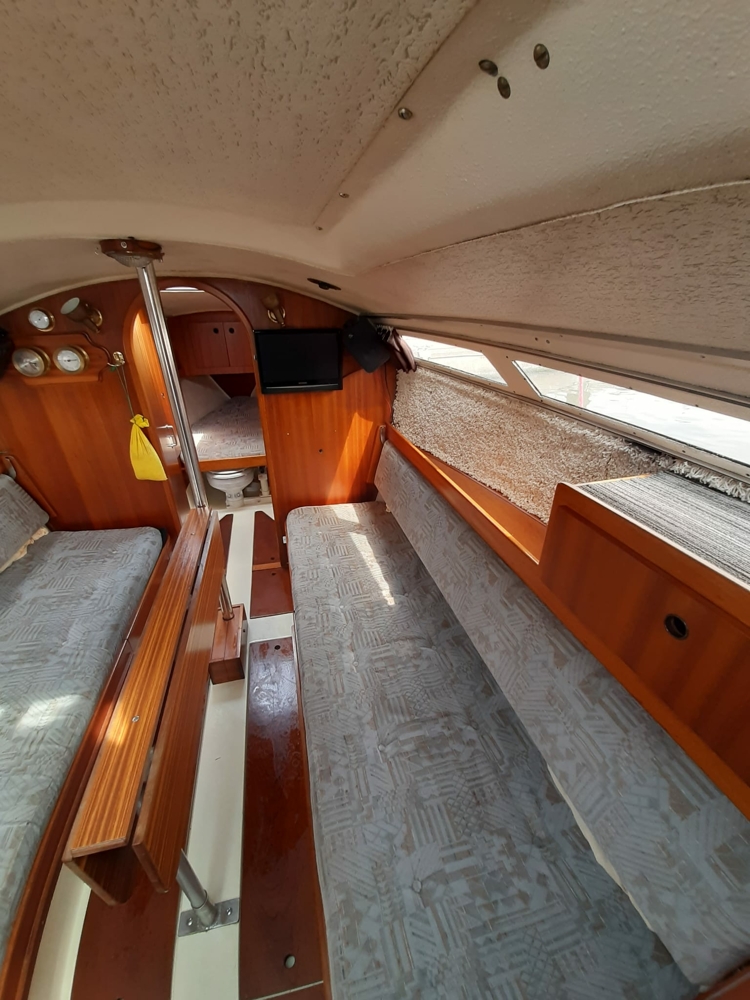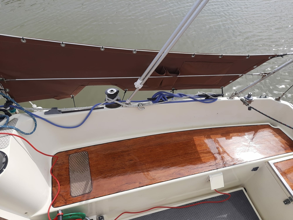 The boat has taken me safely from island to island and place for years. Since I changed my place of residence and unfortunately no longer find time for it, I now sell it by this way. Last in the water was the boat in September 2024 since then it has been on the North Sea island Juist where also the home port of the boat is on land on a trailer that is unfortunately not allowed for road traffic.