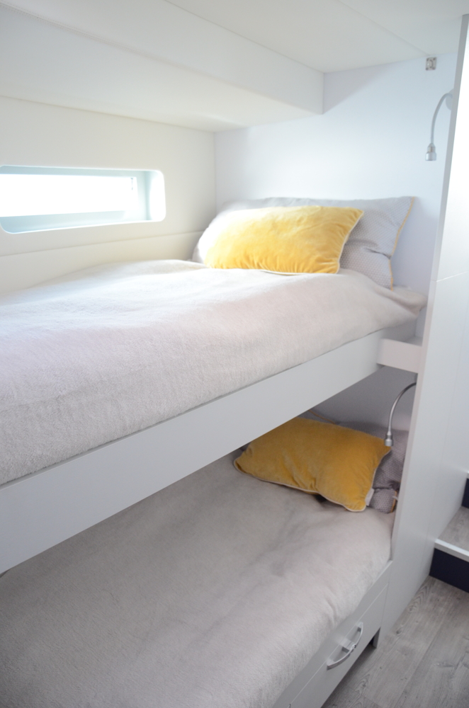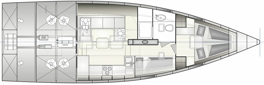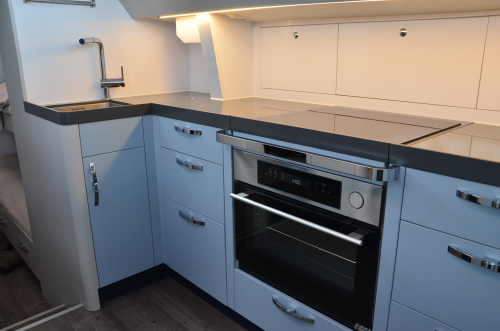 Under sail, the flexible sailing plan allows easy adaptation to all wind conditions. With the self-turning fock, the cruising becomes hard on the wind to the children's play. In typical light-winding areas you can also sail well at 1-2Bft with code 0 or gennaker and do not need the electric motors.
