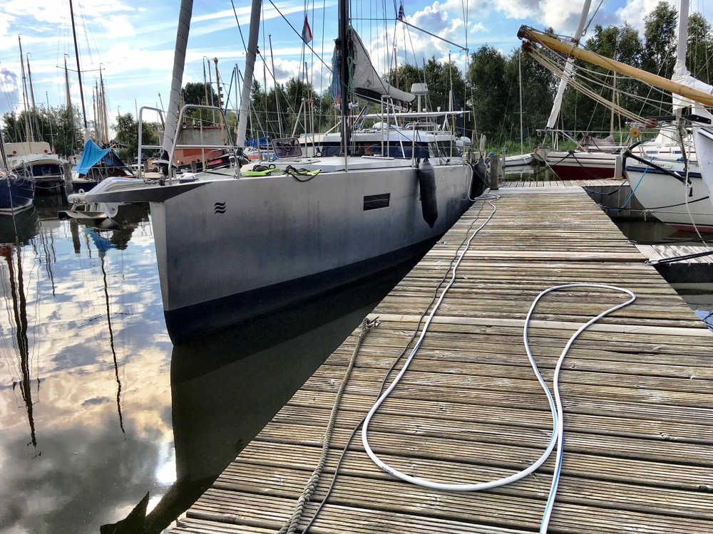 Also included in the purchase price is the complete equipment for the long journey incl. Code 0 Light wind sail, 27kg Ultra anchor, 80m Cromox chain, tail anchor, 2x 100m landline, Highfield UL290 Dinghi, Epropulsion Spirit outboard, etc.
