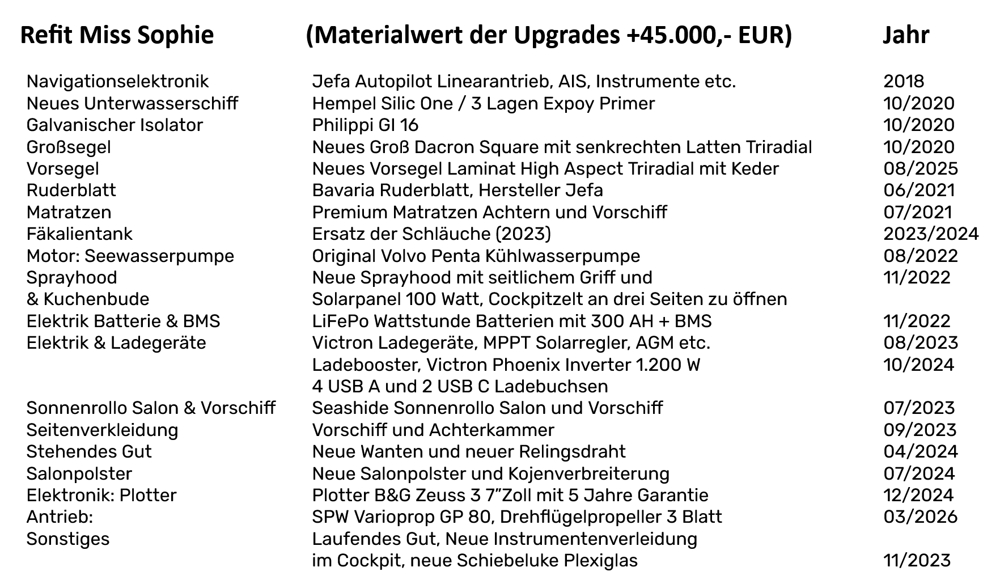 Fully modernized Bavaria 32 Cruiser with over 45,000 EUR upgrade investments — immediately high-sea, without compromise. Complete refit with many premium upgrades and full equipment. Very low traces of use corresponding to age.