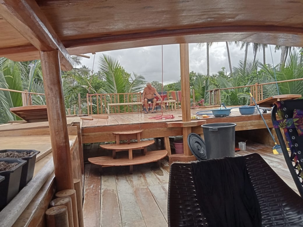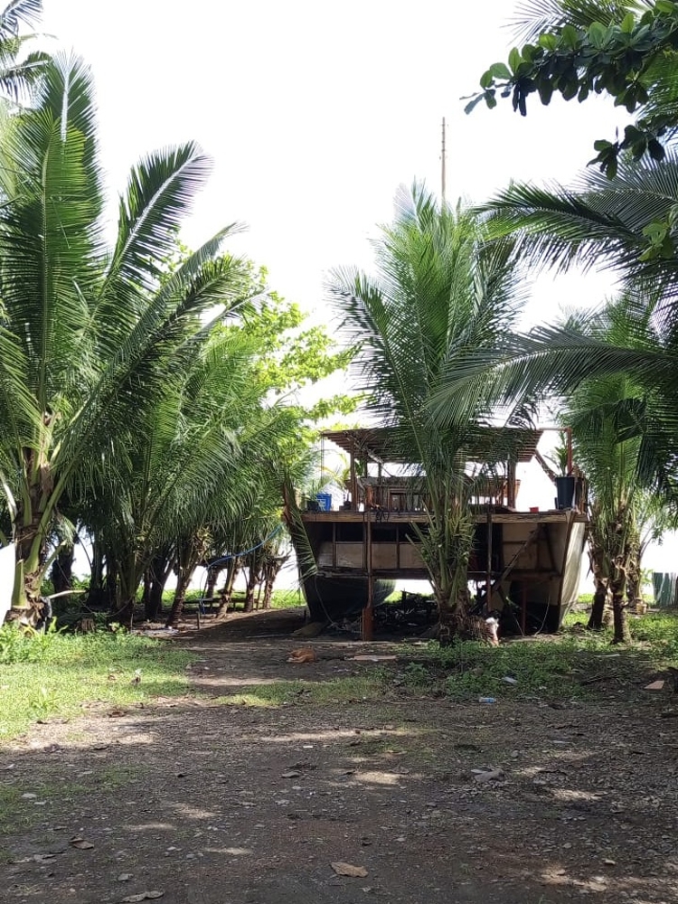For sale is a large wooden project catamaran located directly on the coast in Tandag City, Philippines.