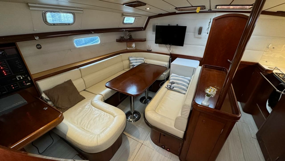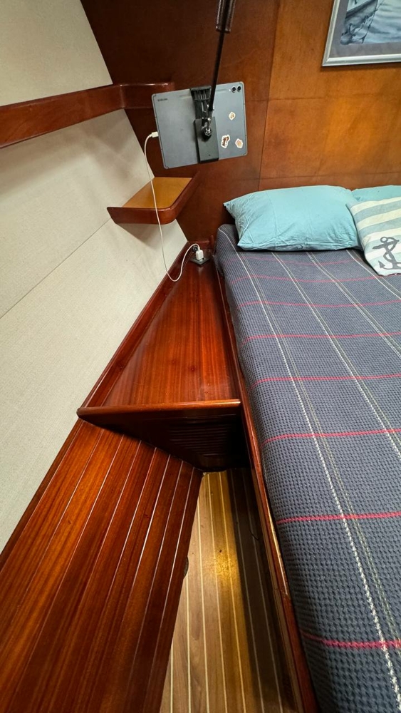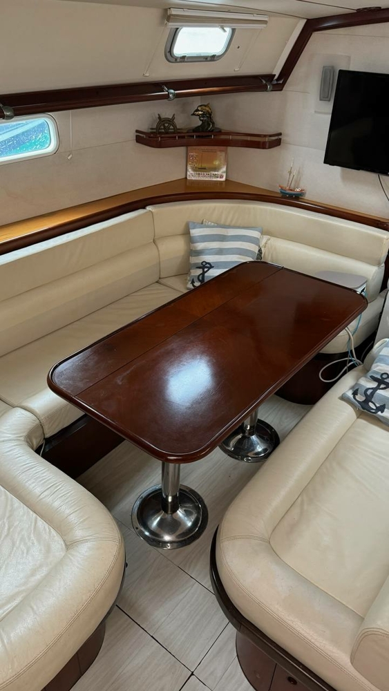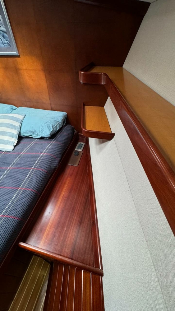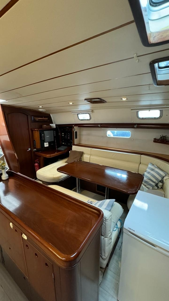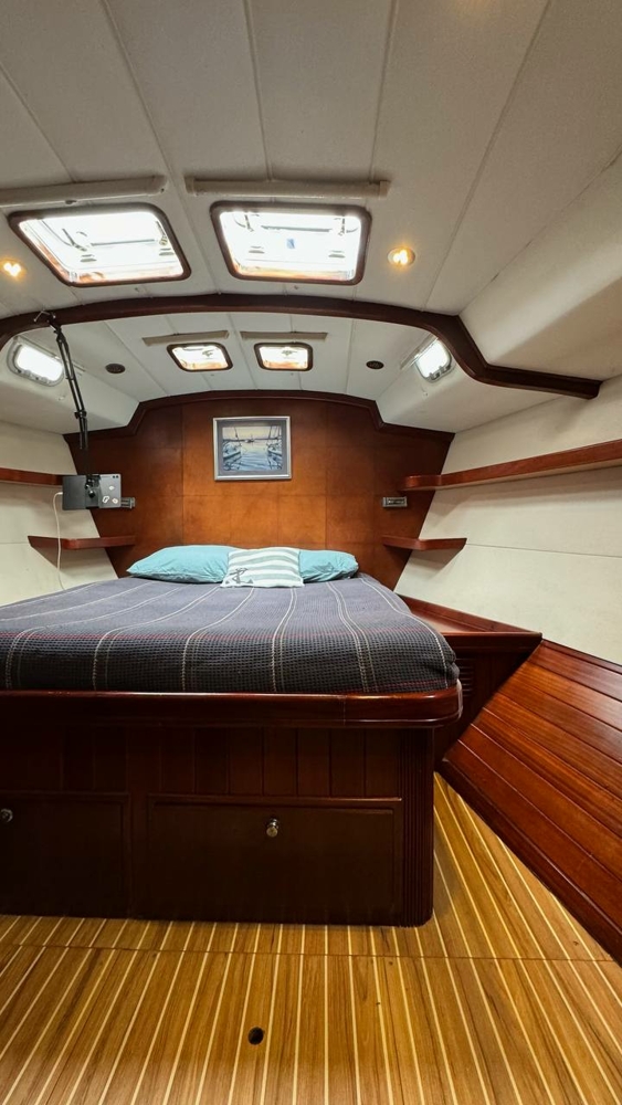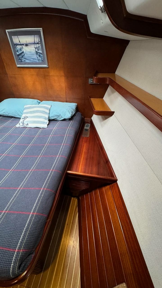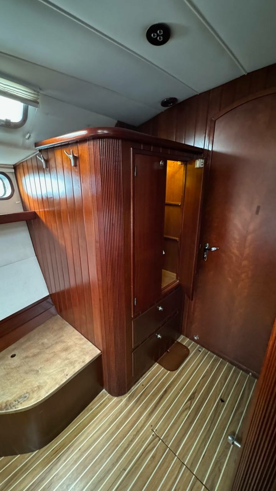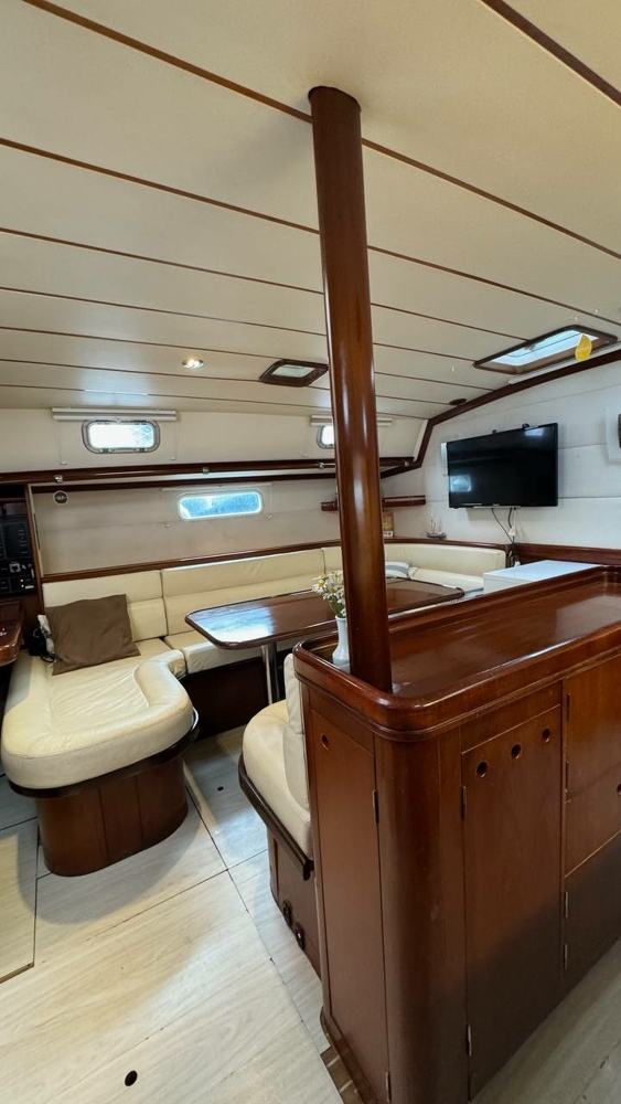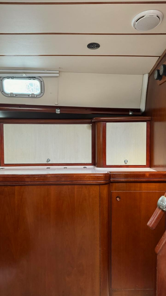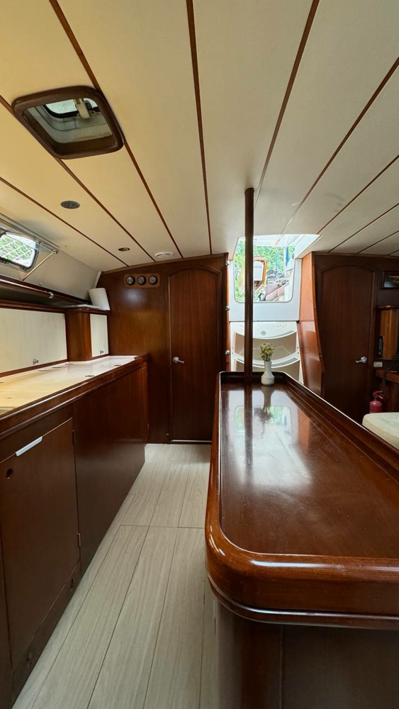 The salon upholstery was reupholstered, interior wood was renewed, and the teak was refurbished.