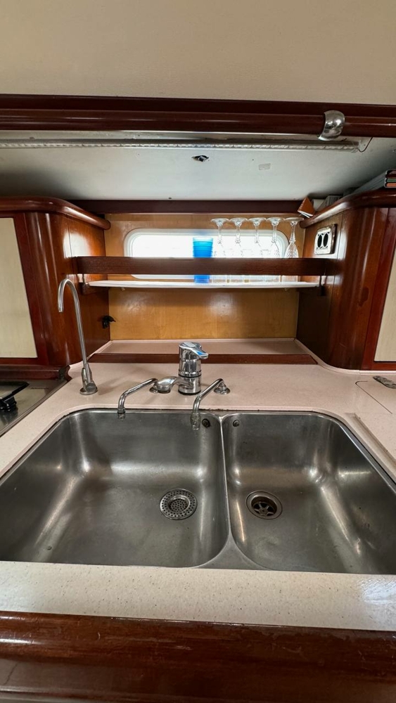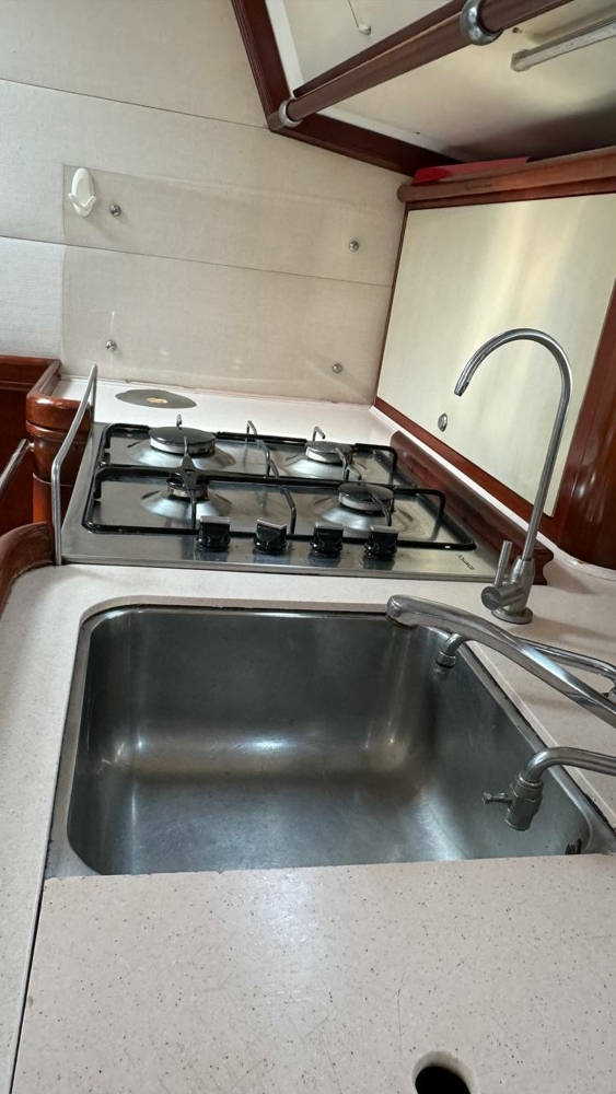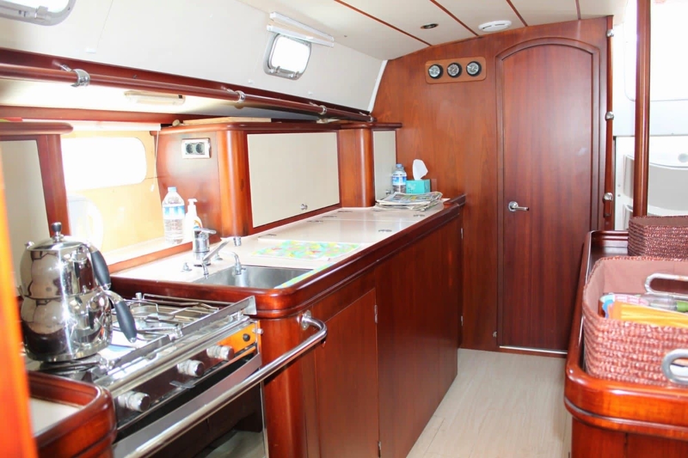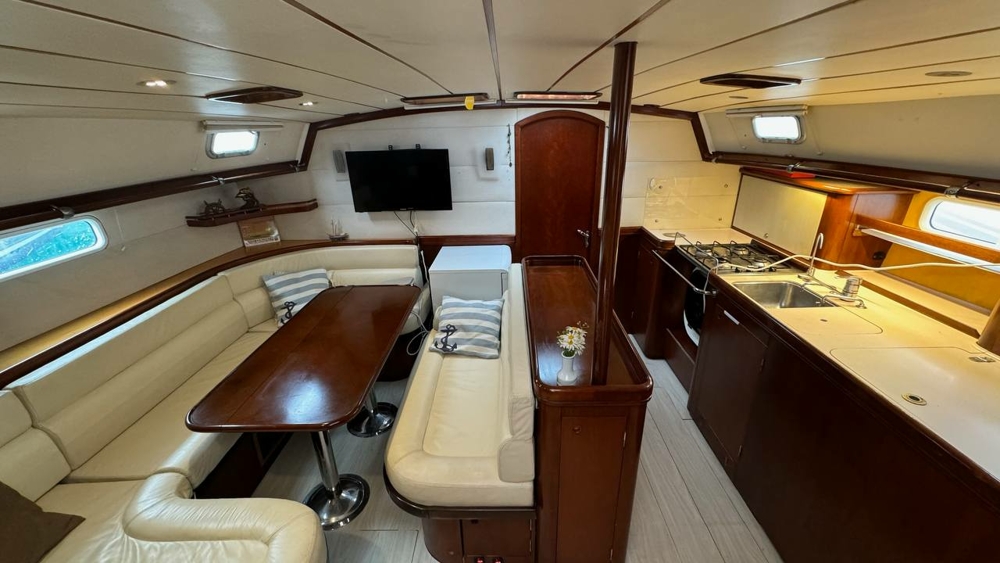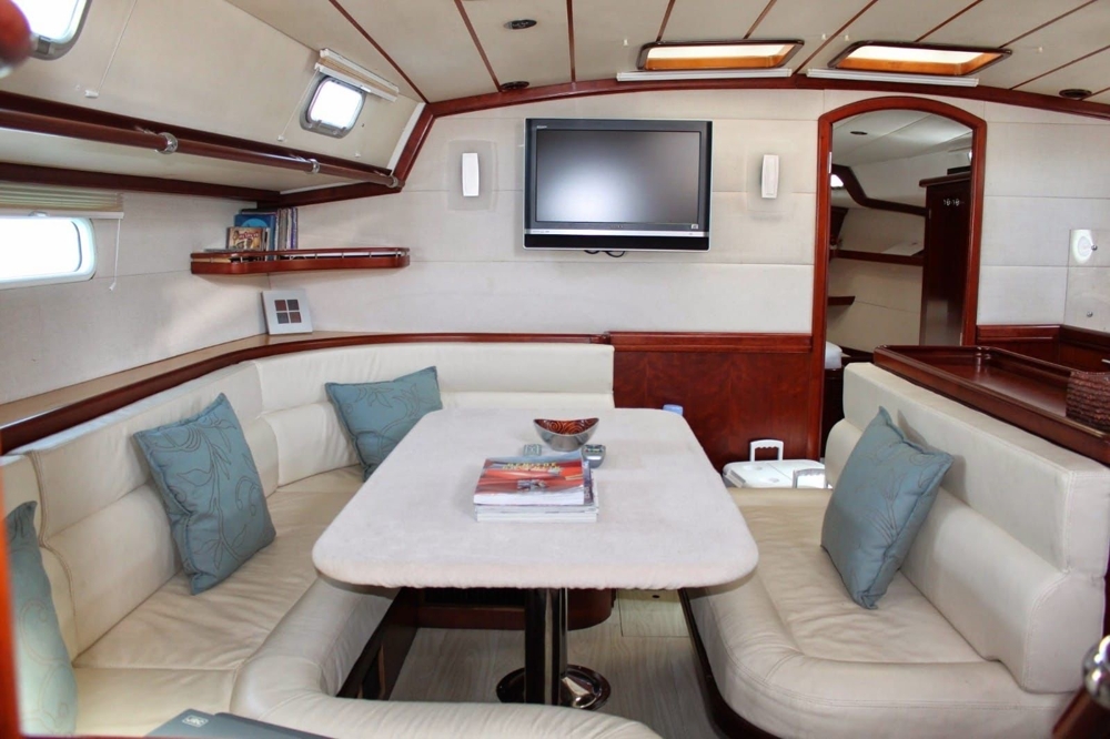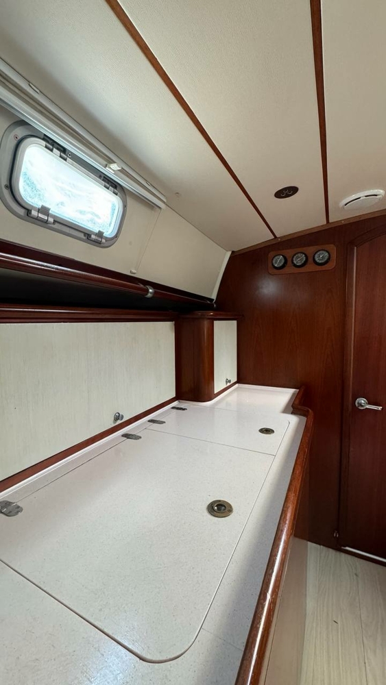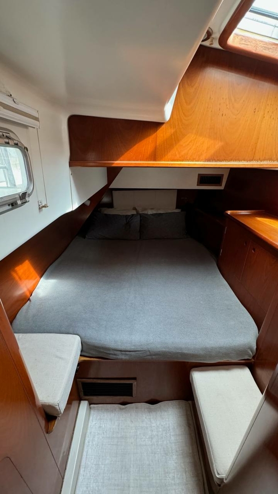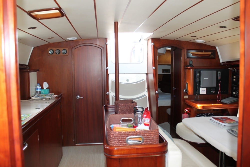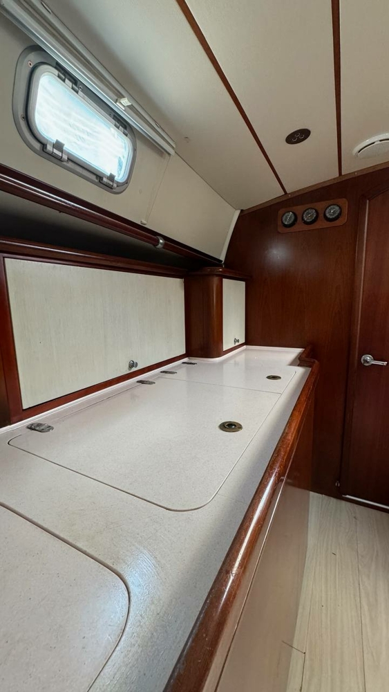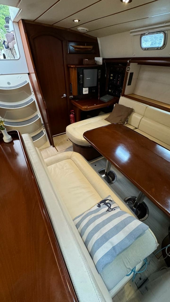 The salon upholstery was reupholstered, interior wood was renewed, and the teak was refurbished.