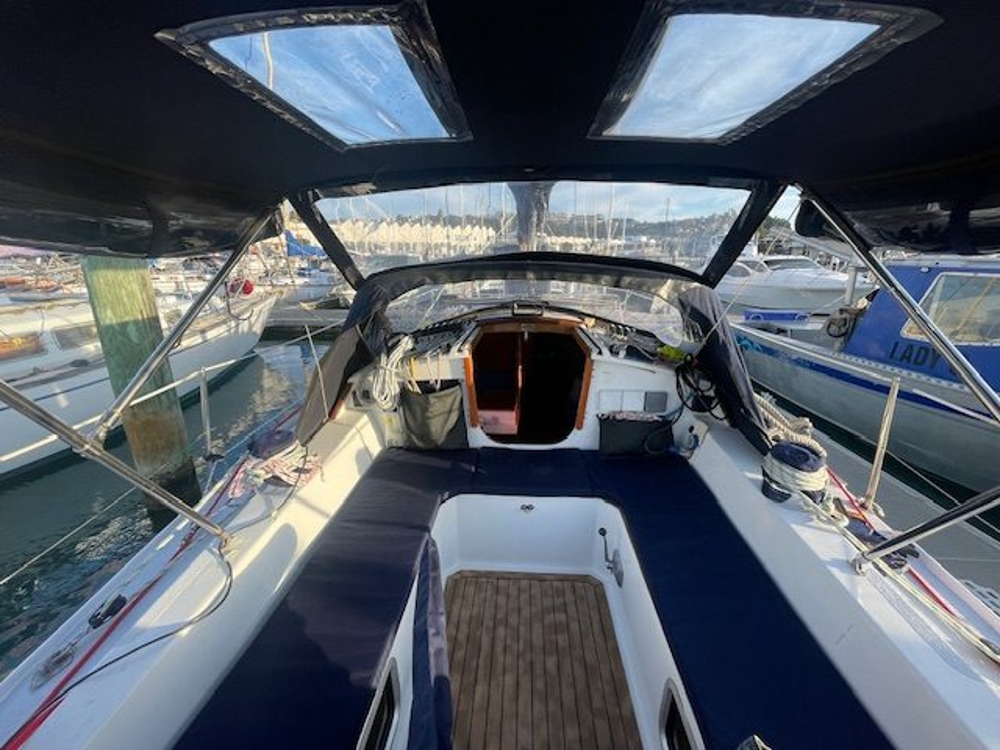 Genoa/ Furlex nos 1.2.3,4 storm , Asymmterical Spinnaker and fully battened Main. All running rigging near new or new. 12 new Spinlock STS series clutches. All Winches just serviced and two new Andersen all SS 45 two speed winches for cockpit sheets. All ropes are cockpit easy solo sailing.