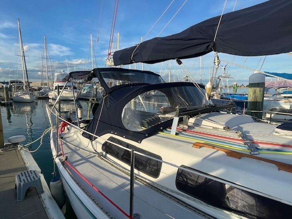 All New Main Sail cover, cockpit squabs, full close down bimini and cockpit cabin covers clears as new.