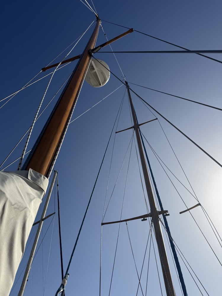 Sail surface 112 m2: Genova 70 m2/Topp-Reff, Fock 18 m2/Stagreiter/1996, grosssegel 30 m2/2006, Besan 15 m2/2006