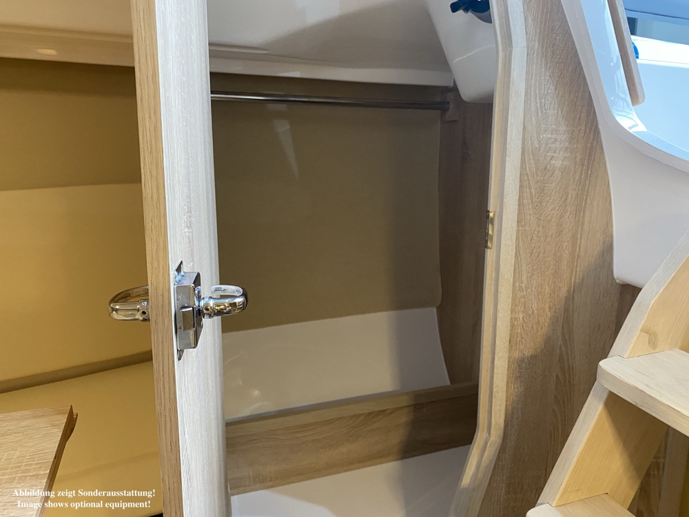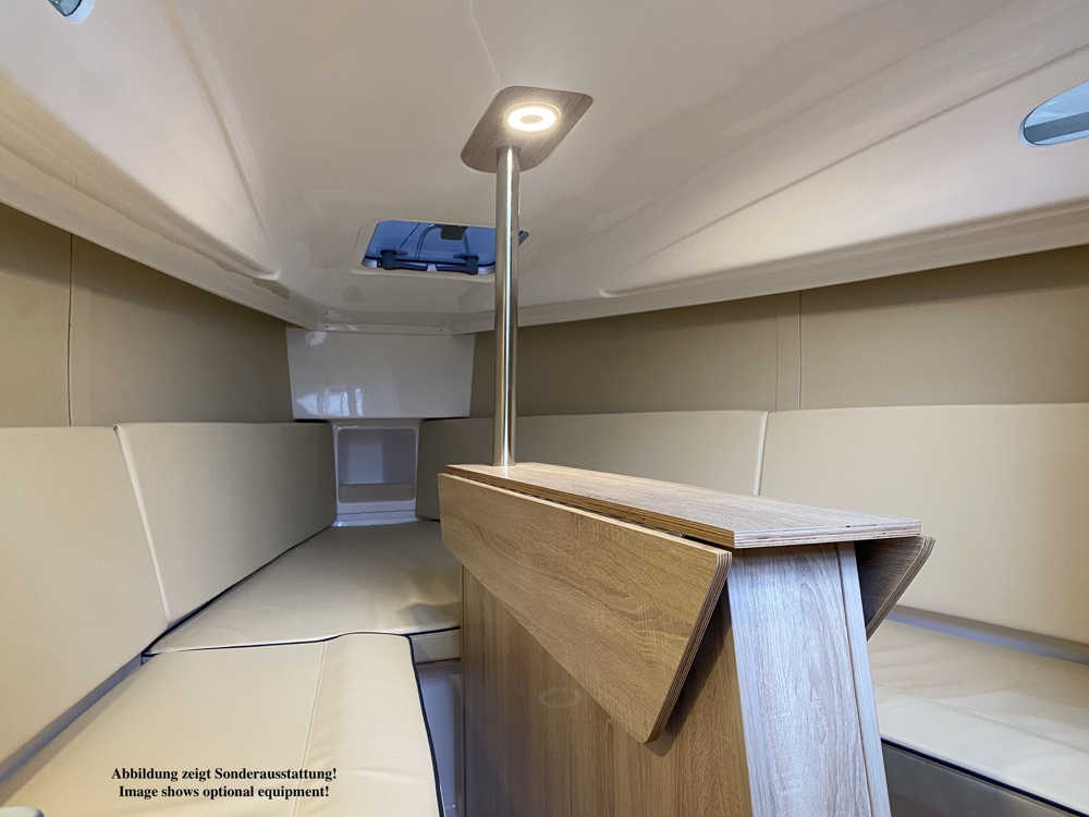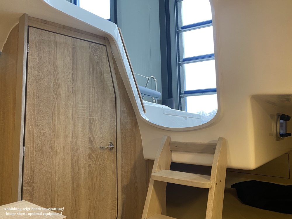 El yate está disponible en varias versiones del equipo de lastre y vela. El diseño de color del dispositivo interior se puede personalizar a petición del cliente.