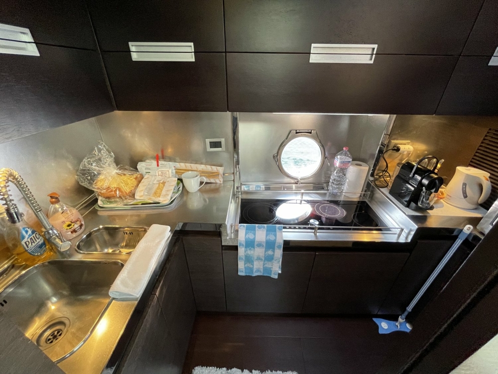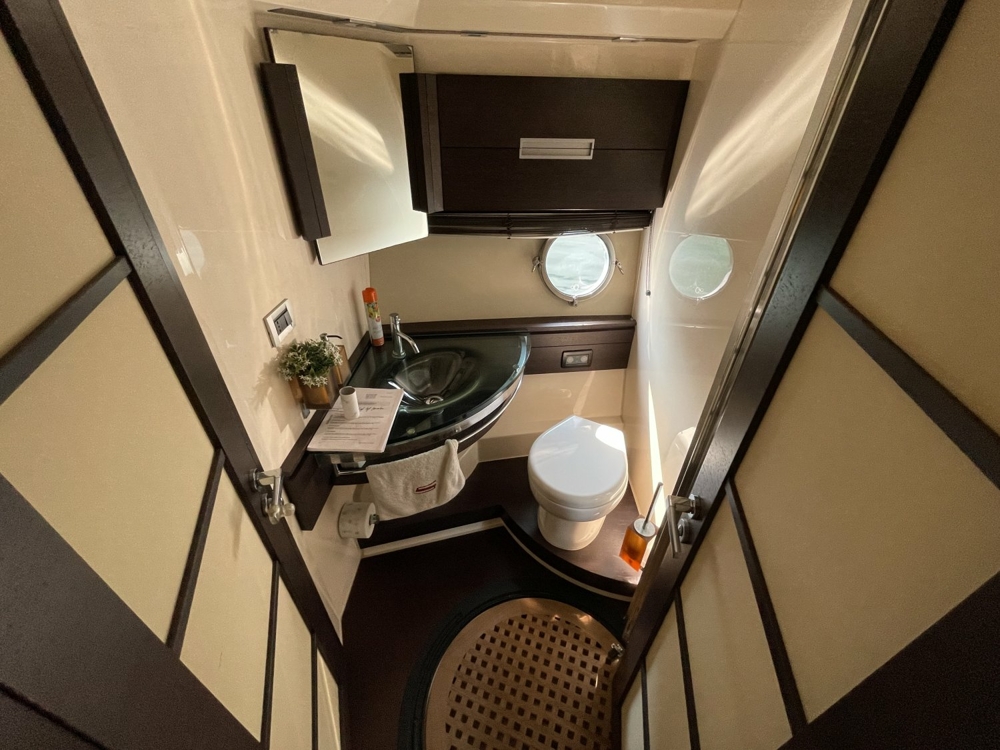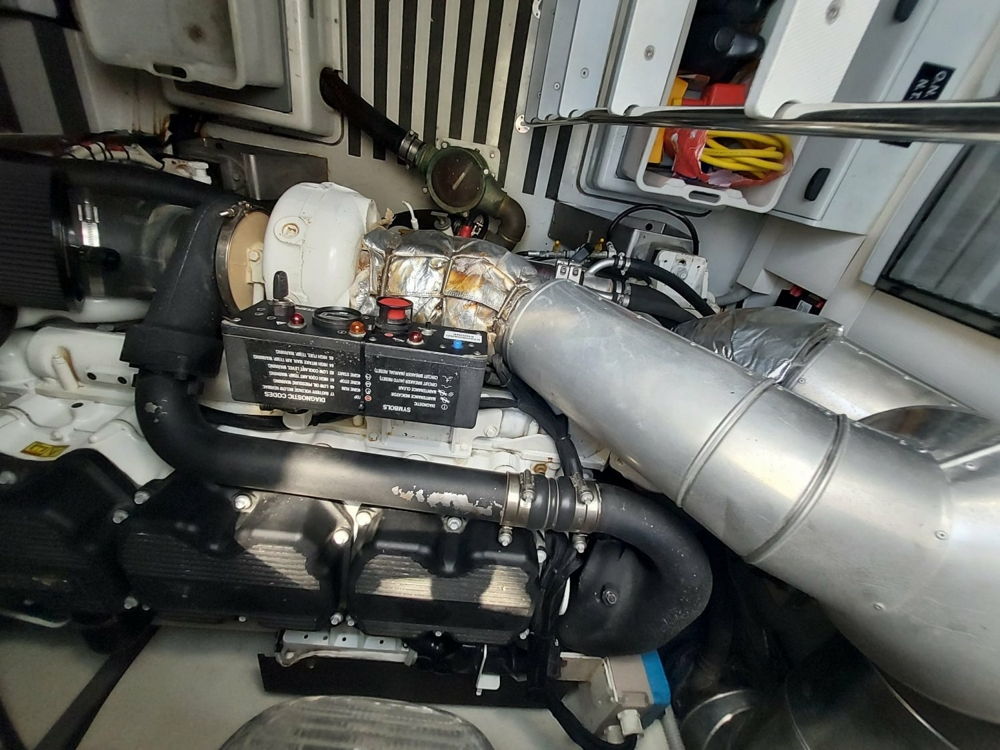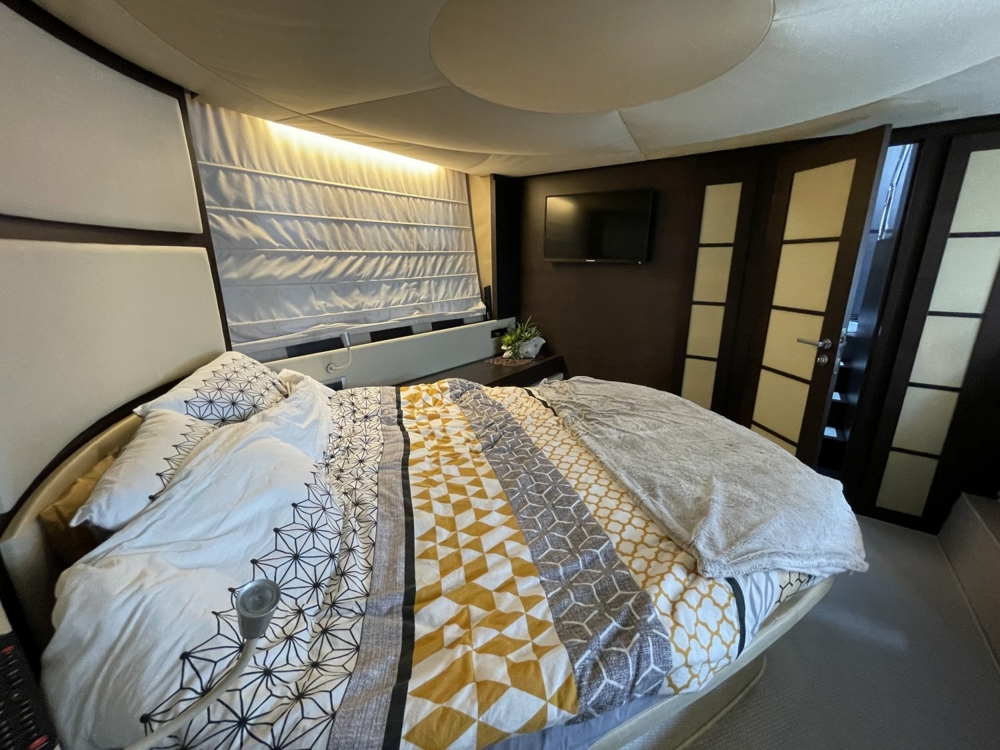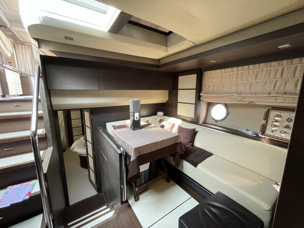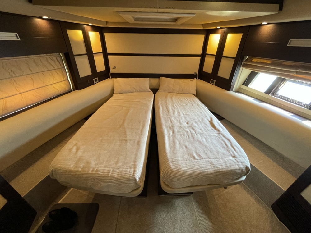 Deze gebruikte boot, maar zorgvuldig onderhouden, heeft complete uitrusting: een buitenkeuken, een solarium, moderne navigatieapparatuur zoals de Ray Marine E-120 en een automatische piloot, evenals comfortvoorzieningen zoals airconditioning, verwarming en een hydraulisch zwemplatform.