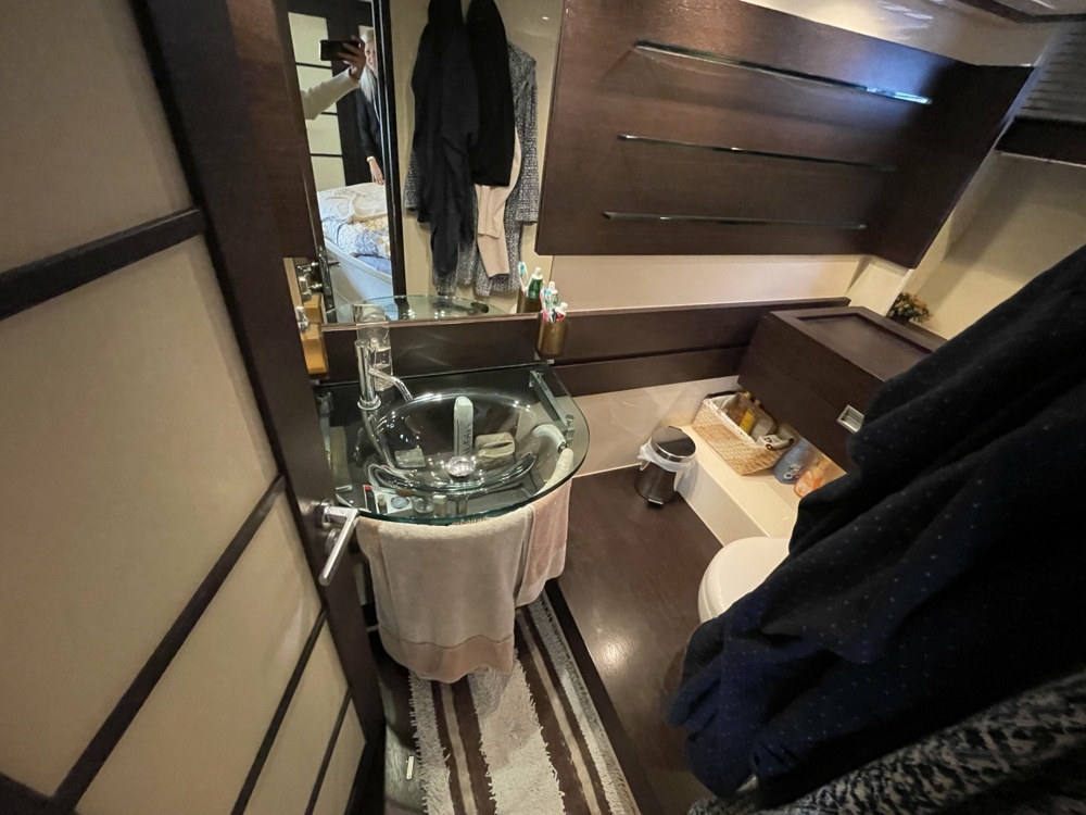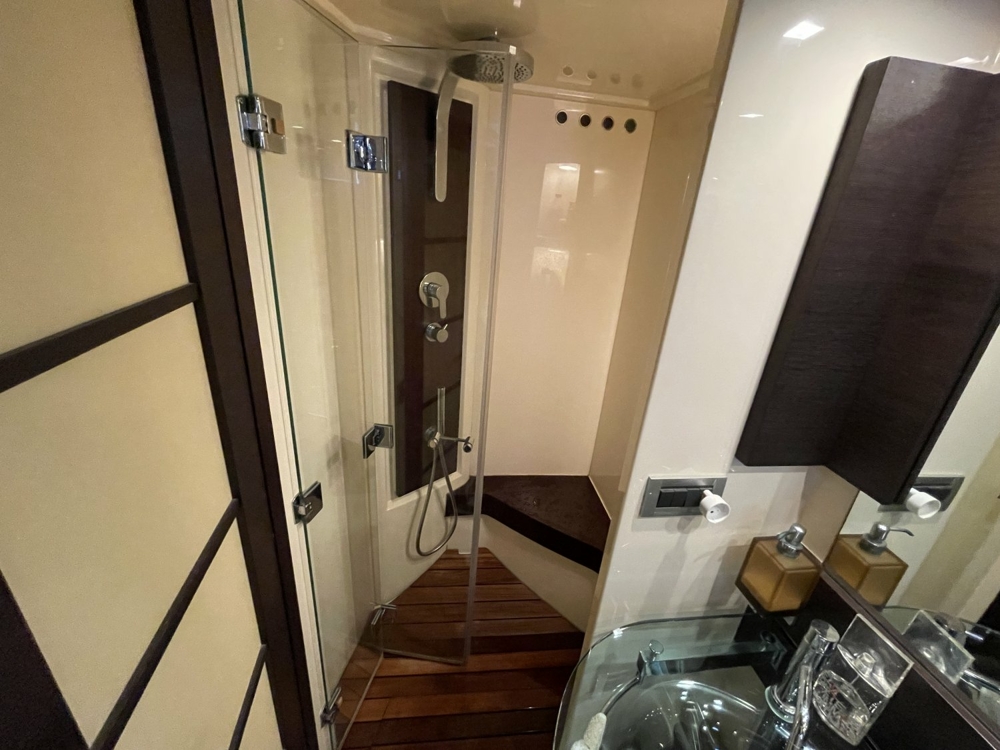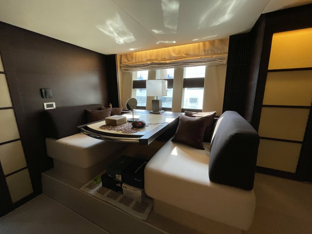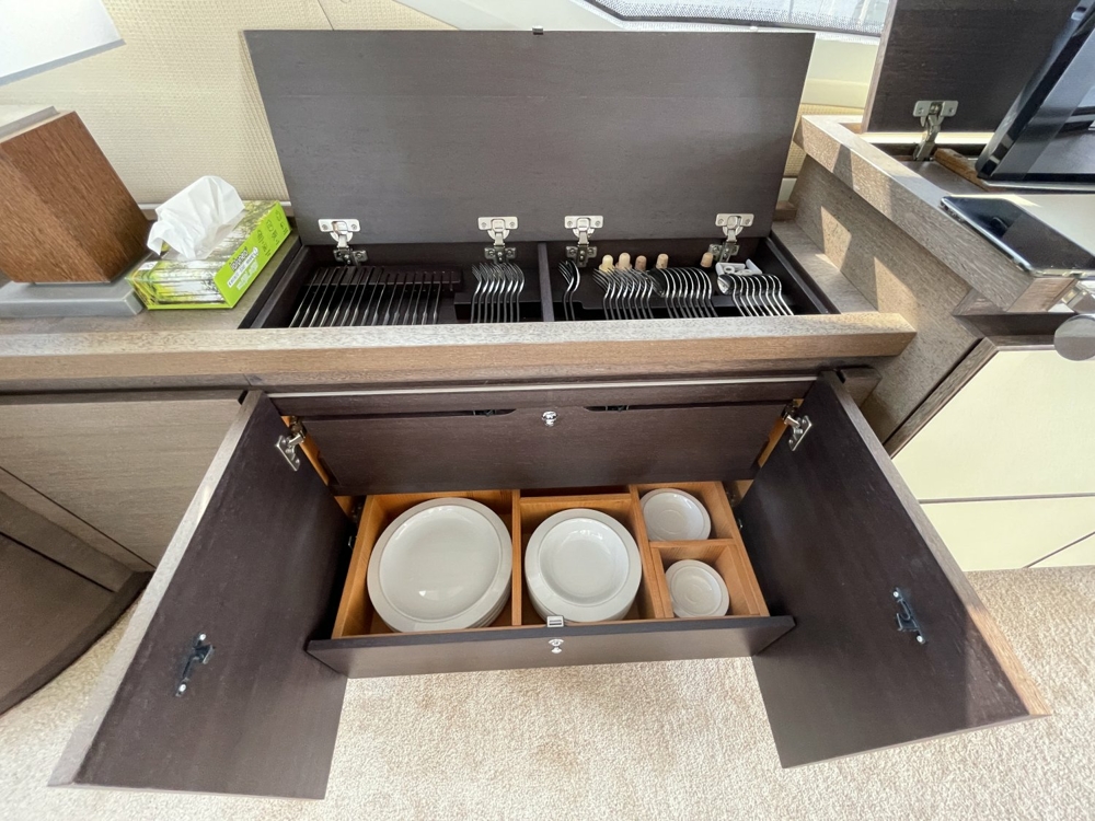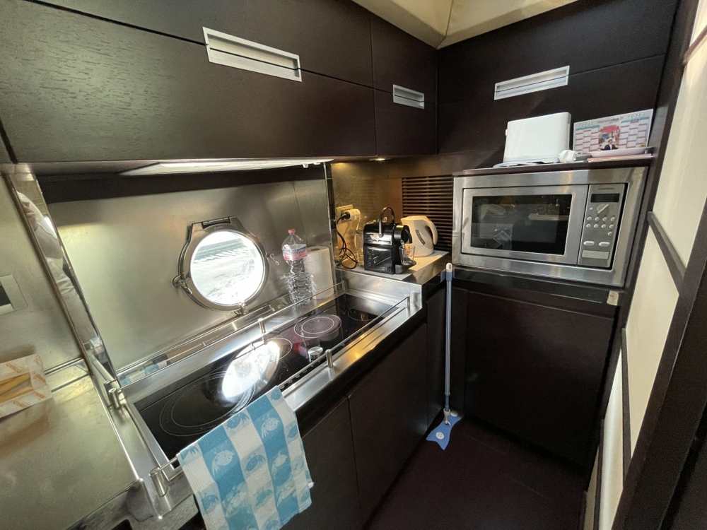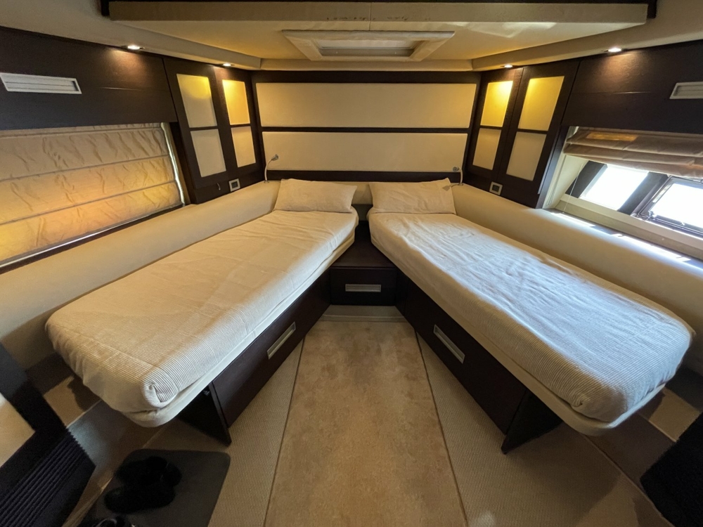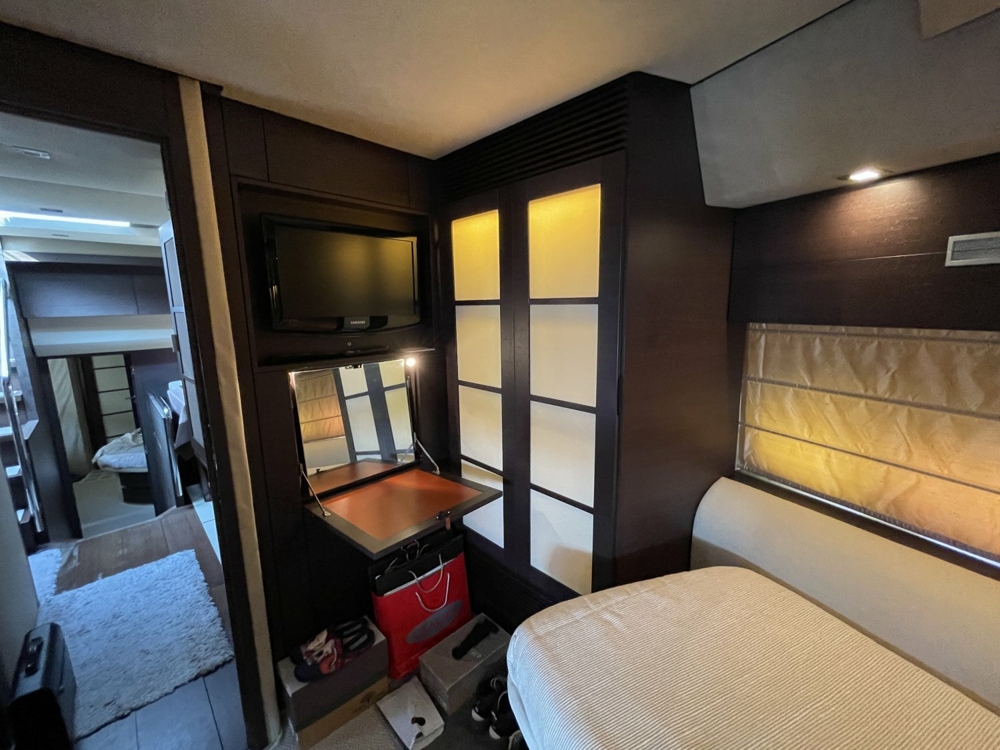 Deze gebruikte boot, maar zorgvuldig onderhouden, heeft complete uitrusting: een buitenkeuken, een solarium, moderne navigatieapparatuur zoals de Ray Marine E-120 en een automatische piloot, evenals comfortvoorzieningen zoals airconditioning, verwarming en een hydraulisch zwemplatform.