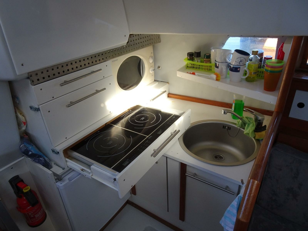 De boot is in goede staat van onderhoud. Uit voorraad en opruimen geen werk! Crane maakt Marina Team (reeds betaald) Open koelwaterklep en ga af! Motor verbruikt ca. 1800 omwentelingen en ca. 4-5 knopen rijden geen 2 ltr / h . Ankerwinde heeft afstandsbediening en ook het stereosysteem. Dinghy heeft 2,5 pk kwik. Geen osmose boot werd gemaakt als een solide laminaat in de werf in handwerk!! Zonnecellen en windgenerator, veel VA processen zie foto's! Reling, boeg en achtermand enorme VA!